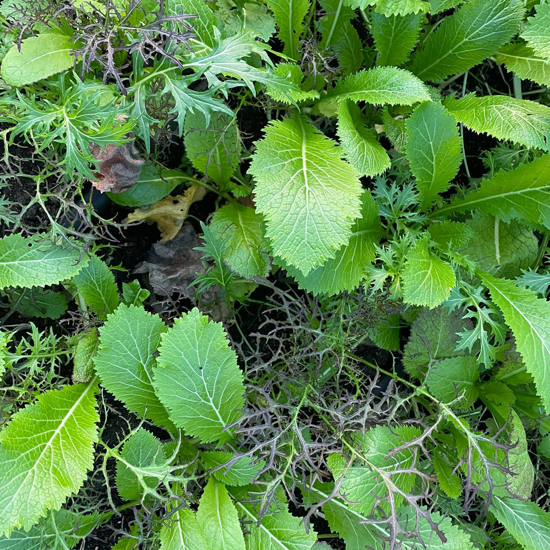 Unser Asiasalat-Mix ist eine Mischung aus vier schnellwachsenden Blattkohl- und Blattsenfsorten (Mizuna, Red Giant, Moutarde Rouge Metis und Green in Snow), die durch eine feine Schärfe und dekorative Blattformen besticht.